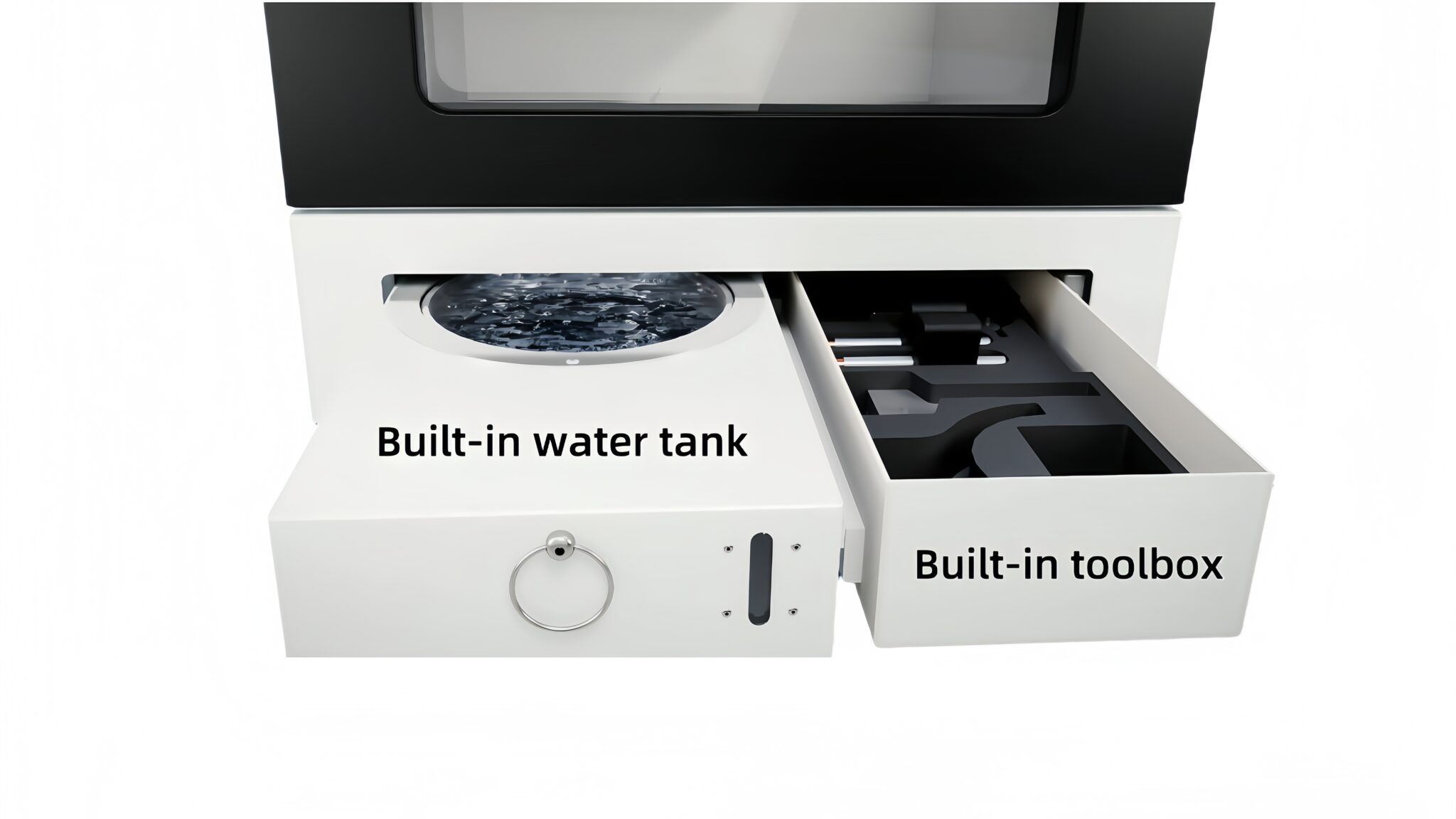 DW52 delivers full wet & dry 5-axis performance with an integrated water tank, freeing you from bulky external units.